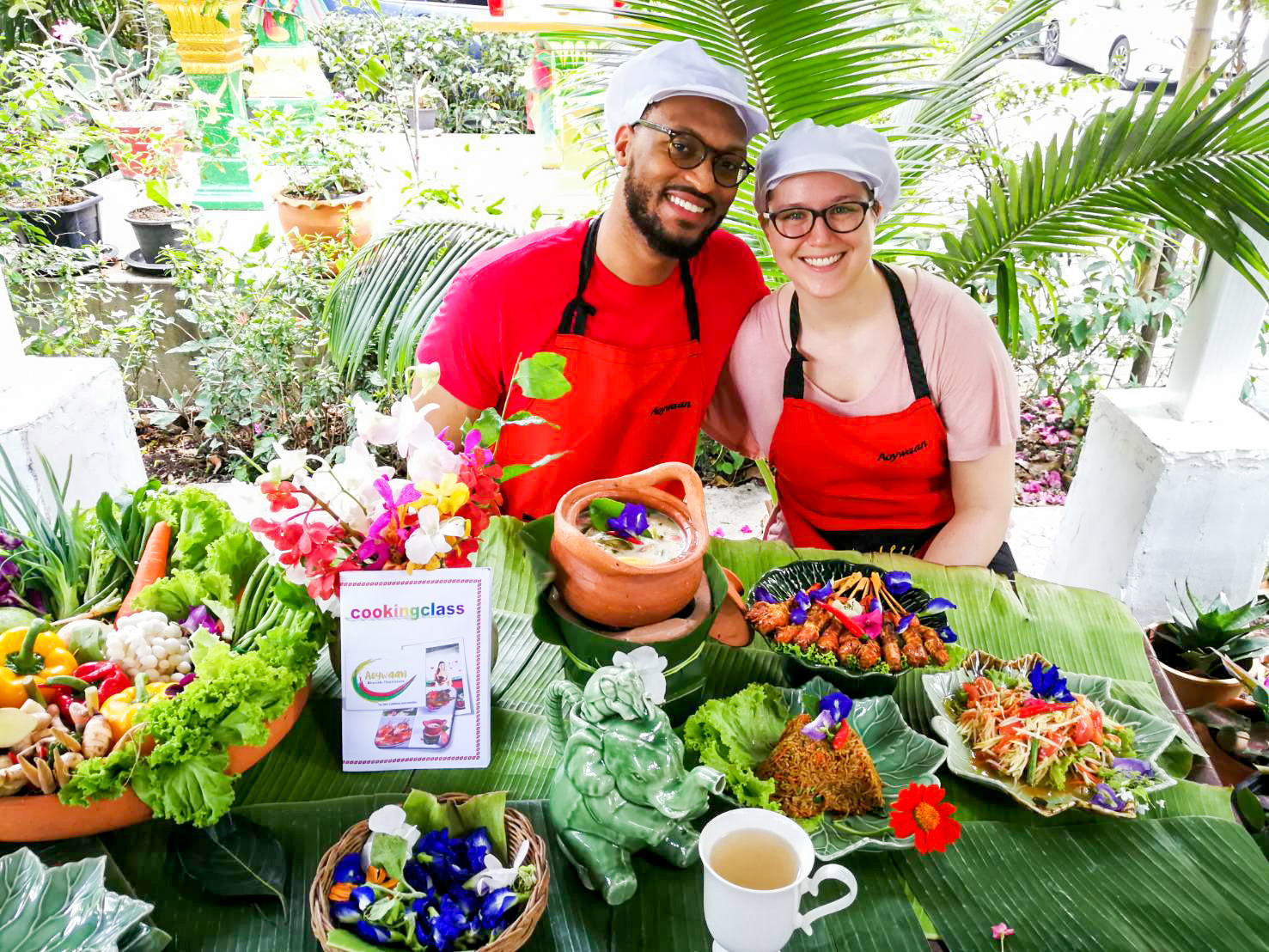Guests then travel to Aoywaan by boat along the scenic Tha Chin river where they are met by staff for a refreshing drink before the start of the class. The menu will typically consist of a full Thai meal with multiple dishes from different regions of Thailand.